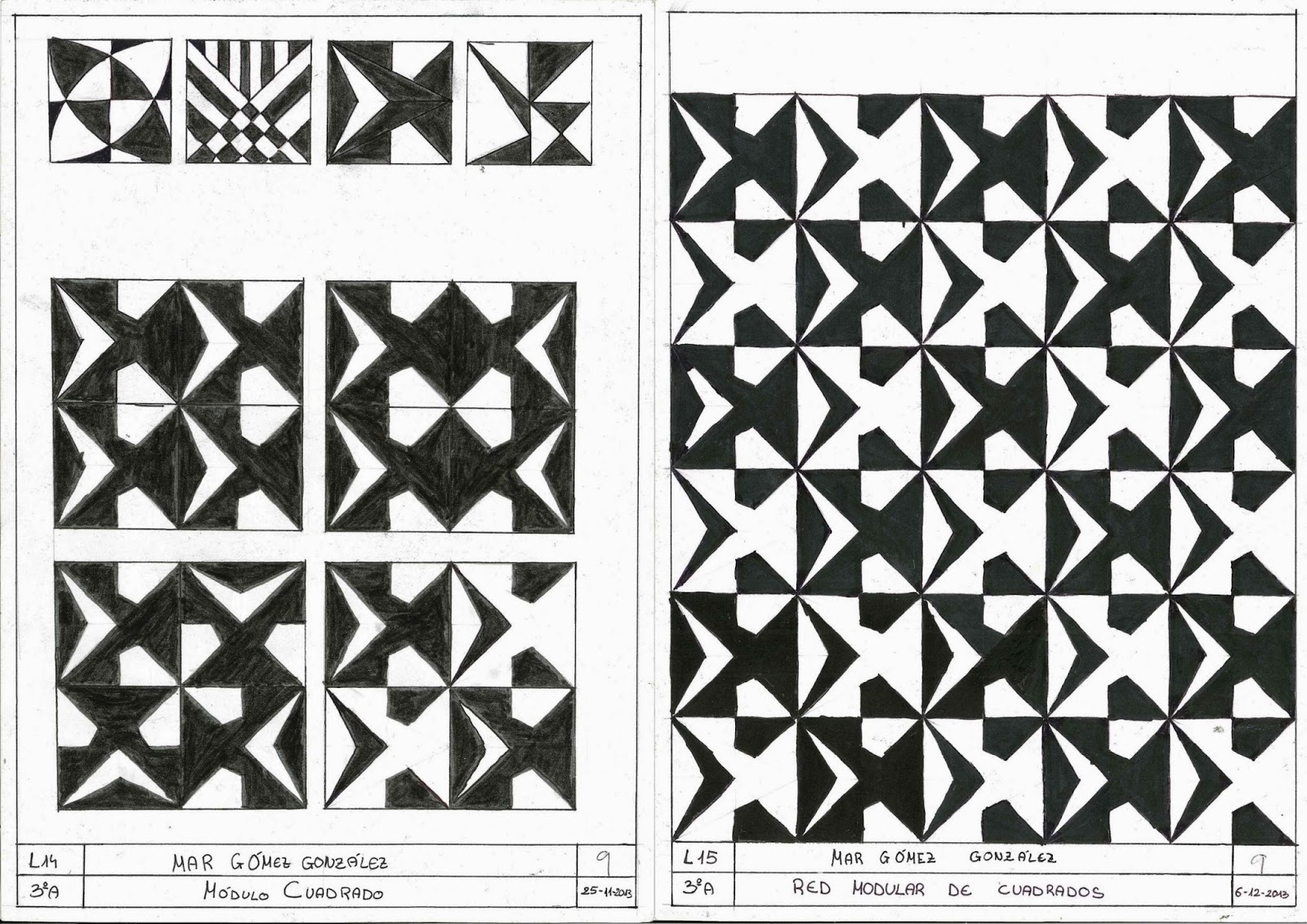 PRACTICA I REDES MODULARES Cualquier imagen puede servirnos como unidad para la creación de una red modular, observa la importancia de la simetría en este proceso DIVISIÓN INTERNA DE UN CUADRADO, POR PROCEDIMIENTOS GEOMÉTRICOS ELECCIÓN DE UN MÓDULO Y REPETIMOS APLICANDO UNA TRASLACIÓN, SIMETRÍA AXIAL, GIRO Y POR ÚLTIMO, INVERTIMOS (POSITIVO-NEGATIVO) ELEGIMOS EL RESULTADO QUE MÁS NOS AGRADE Y LO REPETIMOS… …Y LO REPETIMOS…
